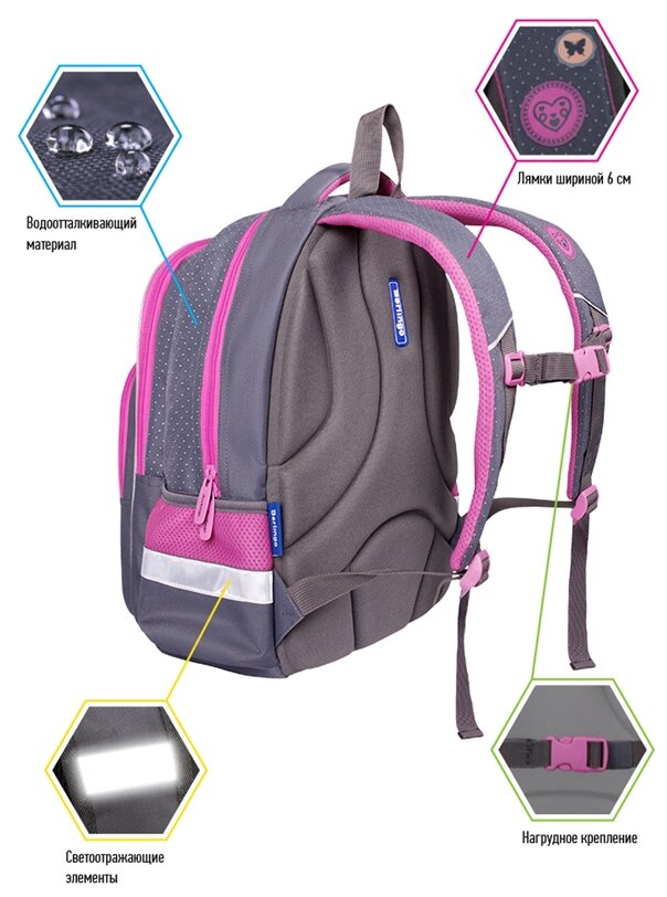Лучшие цены. Эргономичный рюкзак предназначен для учеников начальной и средней школы и является отличной альтернативой жестким ранцам. Формованная спинка из экологичного ЭВА материала устойчива к деформации, создана с учетом анатомического строения спины ребенка, имеет вентиляционные каналы для свободной циркуляции воздуха. Плотные лямки с возможностью регулировки и нагрудный фиксатор позволяют равномерно распределить нагрузку на спину ребенка. Магазины в вашем городе.