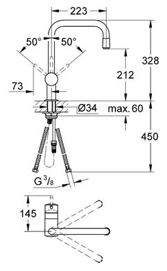 Смеситель Смеситель однорычажный для мойки, DN 15 Grohe Minta 32067 000 (32067000) хром