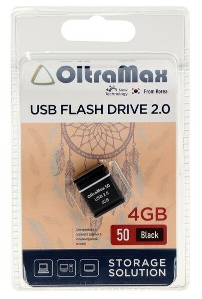 Флешка OltraMax 50, 4 Гб, USB2.0, чт до 15 Мб/с, зап до 8 Мб/с, чёрная 9441523