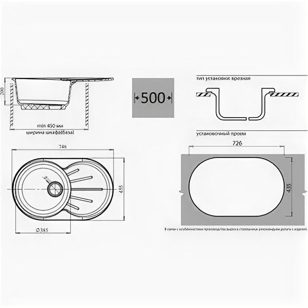Мойка кухонная овальная Granfest Rondo (R-750L черный)