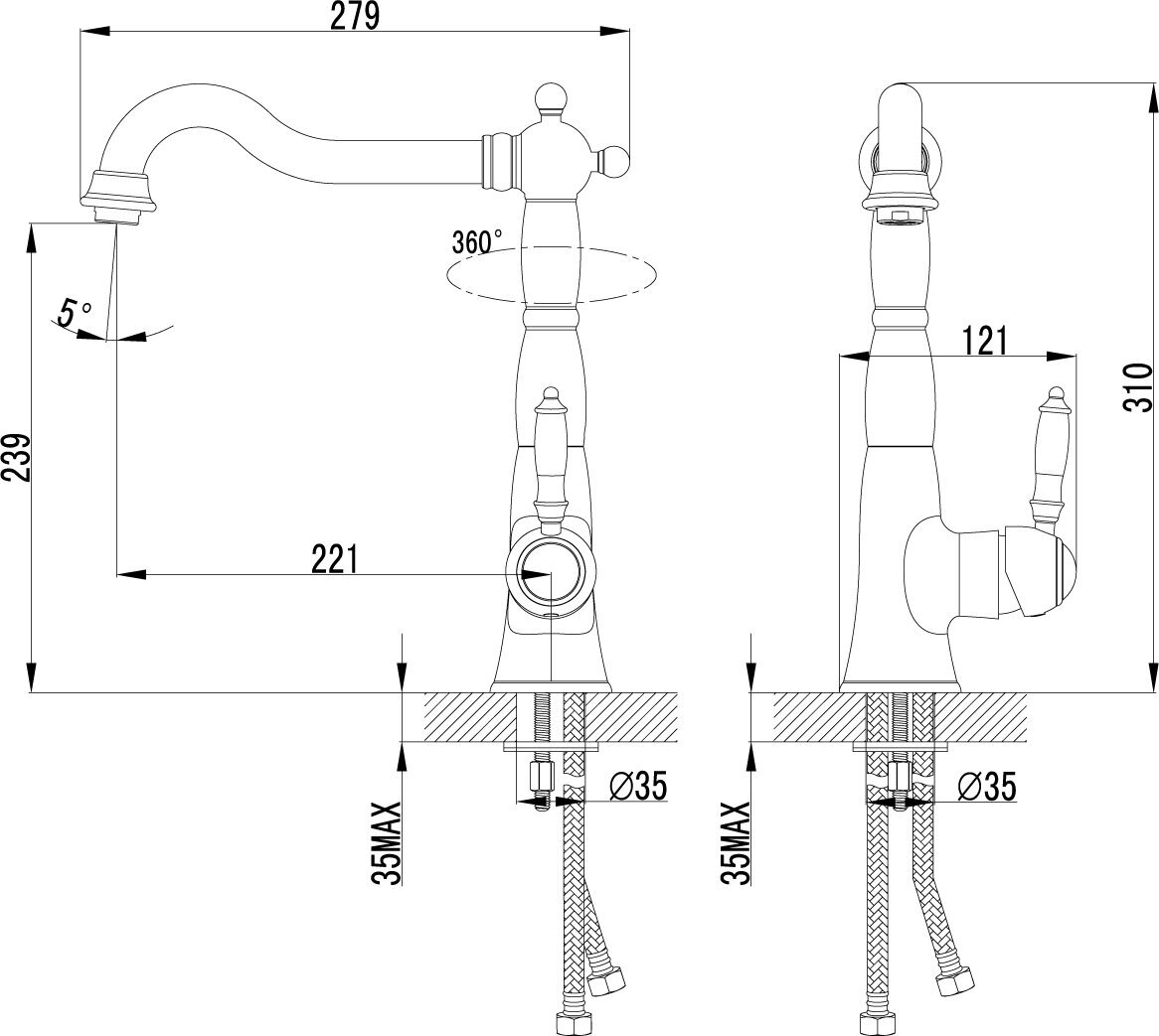 | Диаметр отверстий для установки | 35 мм |