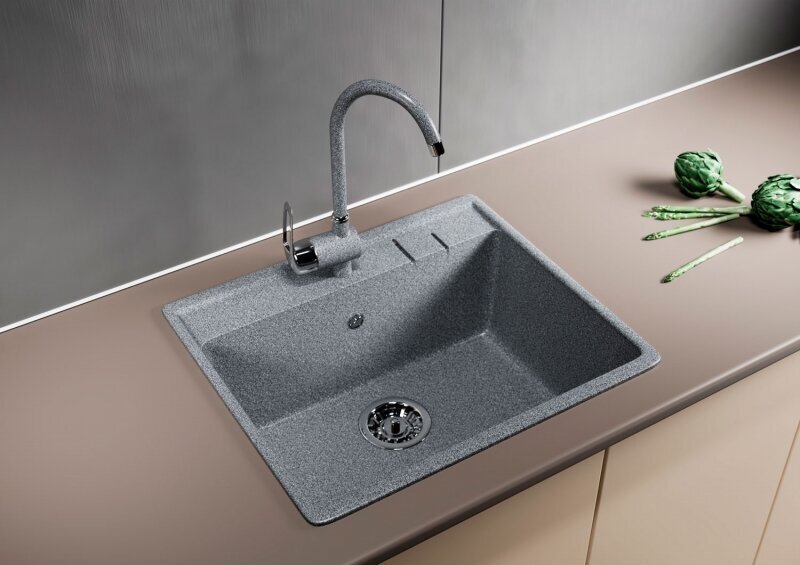 Мойка для кухни из искусственного мрамора, прямоугольная, с сифоном MIXLINE ML-GM 15, темно серая