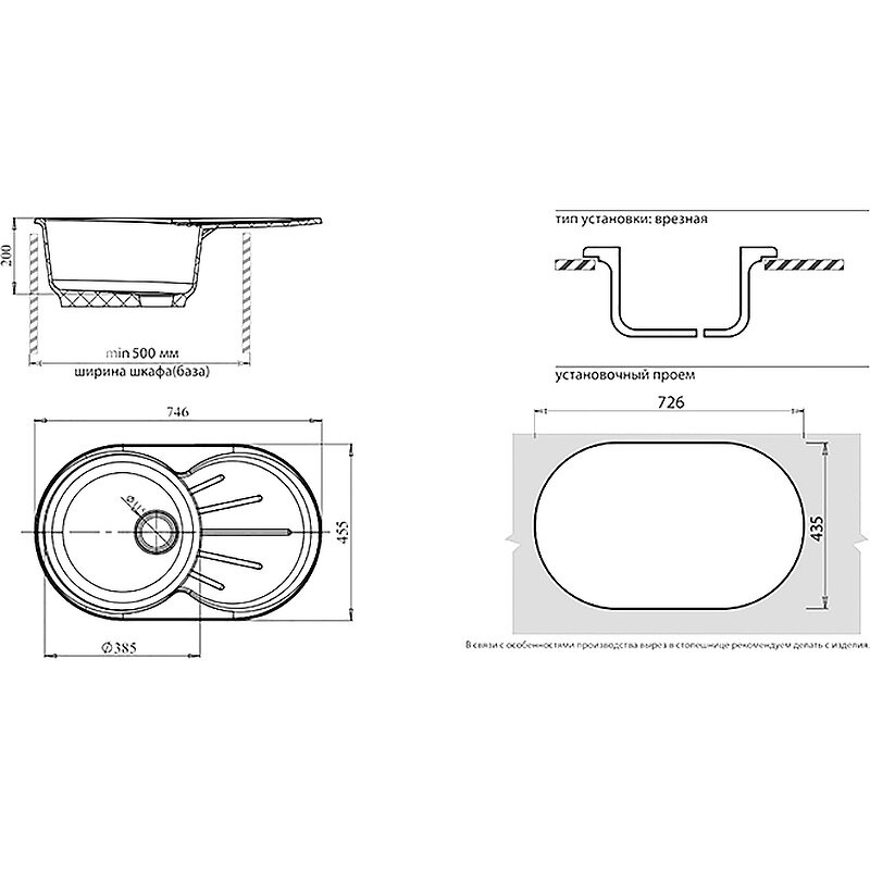 Мойка кухонная овальная Granfest Rondo (R-750L черный) 6 500 ₽ Подробнее