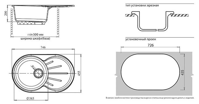 Мойка кухонная овальная Granfest Rondo (R-750L черный)