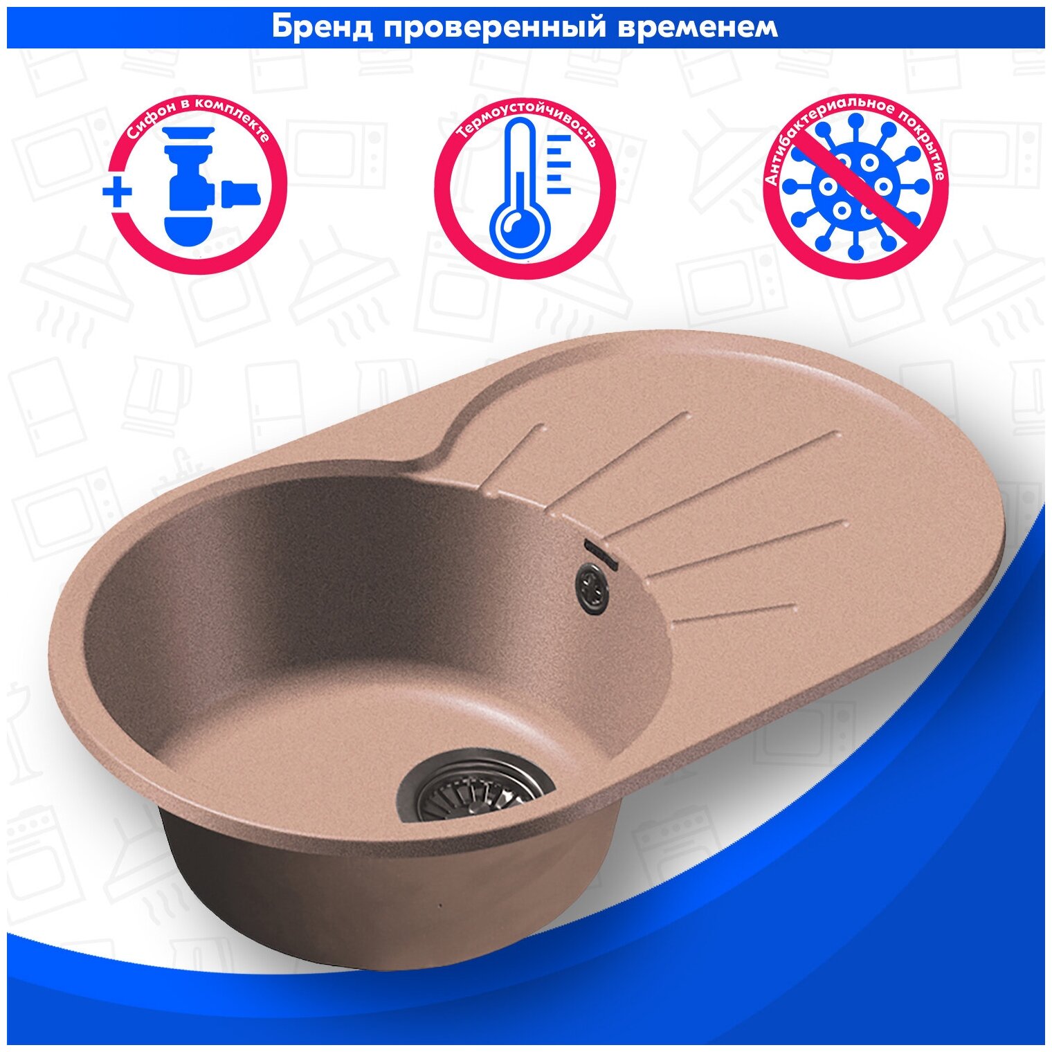 Мойка кухонная овальная Granfest Rondo (R-750L терракот) 7 085 ₽ Подробнее