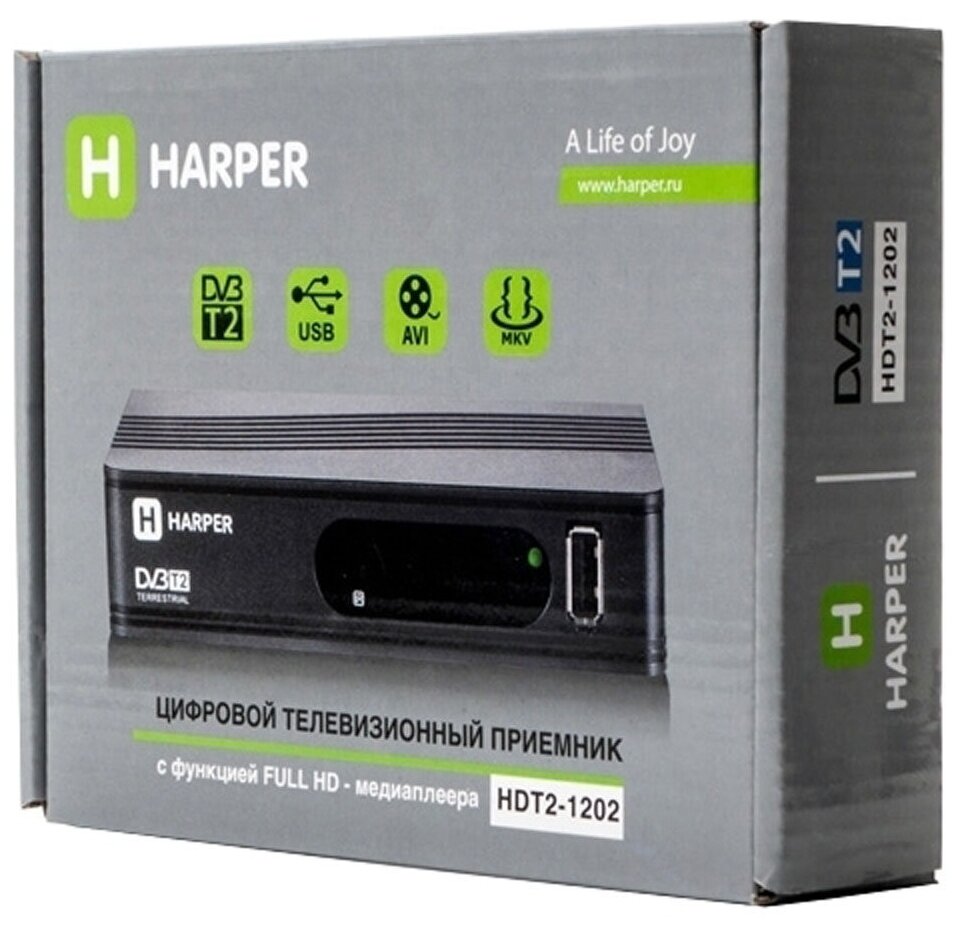 Лучшие цены. Harper HDT2-1202 представляет собой цифровой телевизионный ресивер с возможностью приема цифровых каналов по стандартам DVB-T2 и DVB-T. Поиск и настройка каналов может производиться как автоматически, так и в ручном режиме. Ресивер может подключаться практически к любому телевизору, для этого на задней панели предусмотрены самые популярные аппаратные выходы: разъем RF-OUT (антенный разъем), HDMI (порт для передачи цифровых сигналов) и набор разъемов RCA (так называемые «тюльпаны»). Магазины в вашем городе.