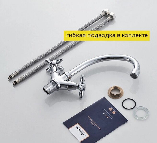 Cмеситель для кухни Accoona A4078, двухвентильный, с гайкой, латунь, хром Accoona 3114403 .