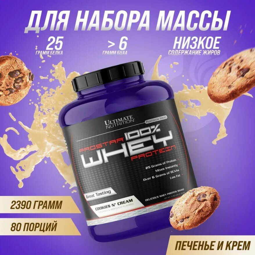 Ultimate Nutrition, Prostar 100% Whey Protein (2.27-2.39 кг) (печенье и сливки)