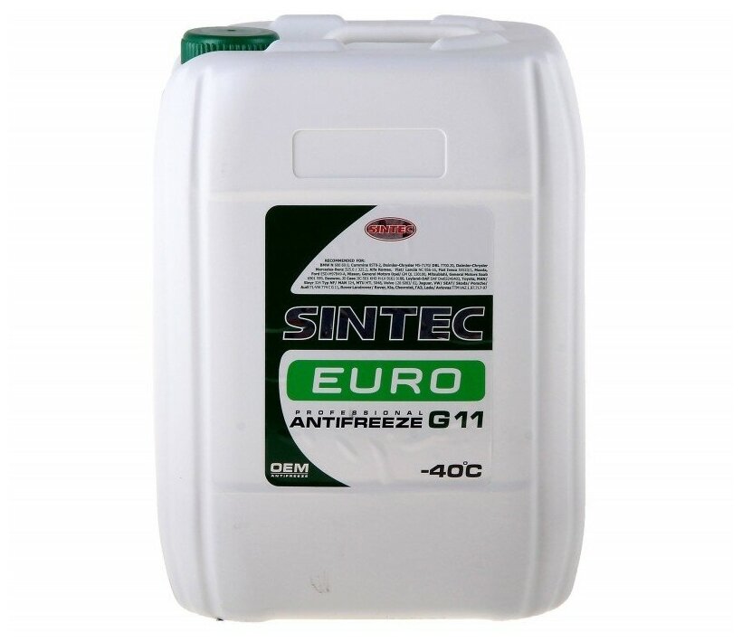 Лучшие цены. Антифриз SINTEC EURO – охлаждающая жидкость последнего поколения, созданная на основе высококачественного моноэтиленгликоля и импортных ингибиторов коррозии. Применяется в системе охлаждения легковых автомобилей отечественного и зарубежного производства, грузовиков и других транспортных средств со средними и тяжелыми условиями эксплуатации. Обеспечивает правильный тепловой режим эксплуатации двигателя, предотвращает появление коррозии и отложений в системе охлаждения. Магазины в вашем городе.