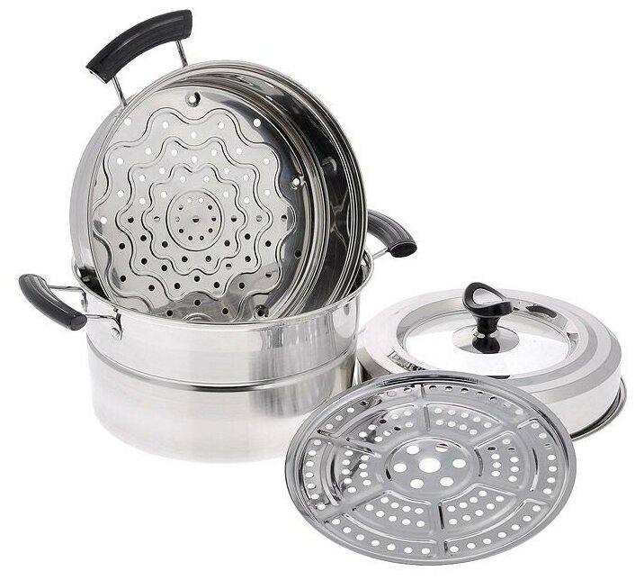 Кастрюля Мантоварка 2-х уровневая 24см из нержавеющей стали 21459