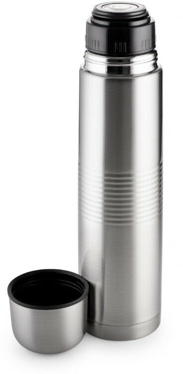 Лучшие цены. Термос из нержавеющей стали для напитков объёмом 500 мл. Корпус рифлёный, благодаря чему термос очень удобно держать в руке. Крышка-чашка на винтовой резьбе. Узкое горло и пробка с кнопкой. Двухслойная вакуумная колба изготовлена из пищевой нержавеющей стали, внутренняя поверхность тщательно отшлифована, легко моется. Между корпусом и внутренней колбой находится слой вакуума, благодаря которому термос и сохраняет температуру содержимого. Магазины в вашем городе.