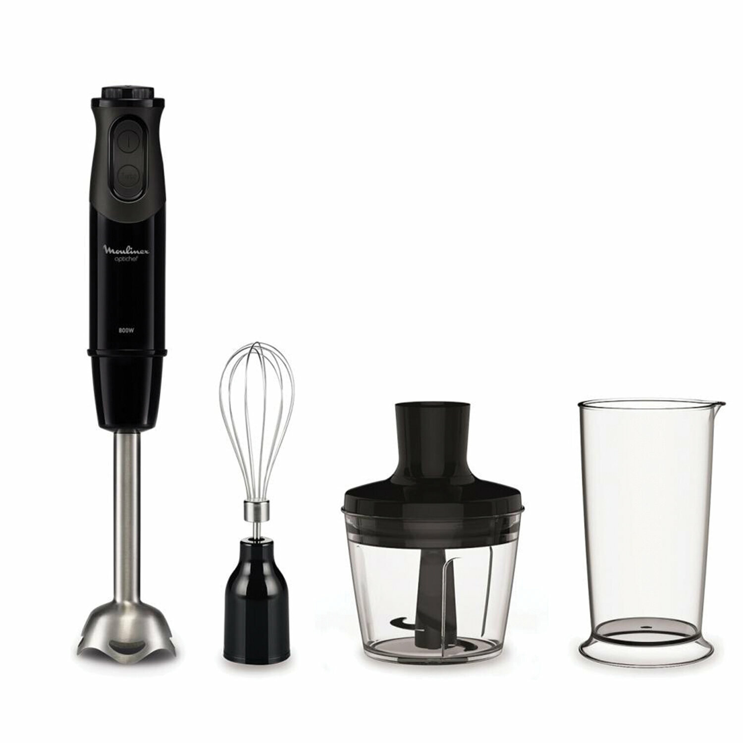 Миксеры и блендеры Блендер погружной MOULINEX DD64K832, 800 Вт, 10 скоростей, 3 насадки, стакан, черный, 7211002886