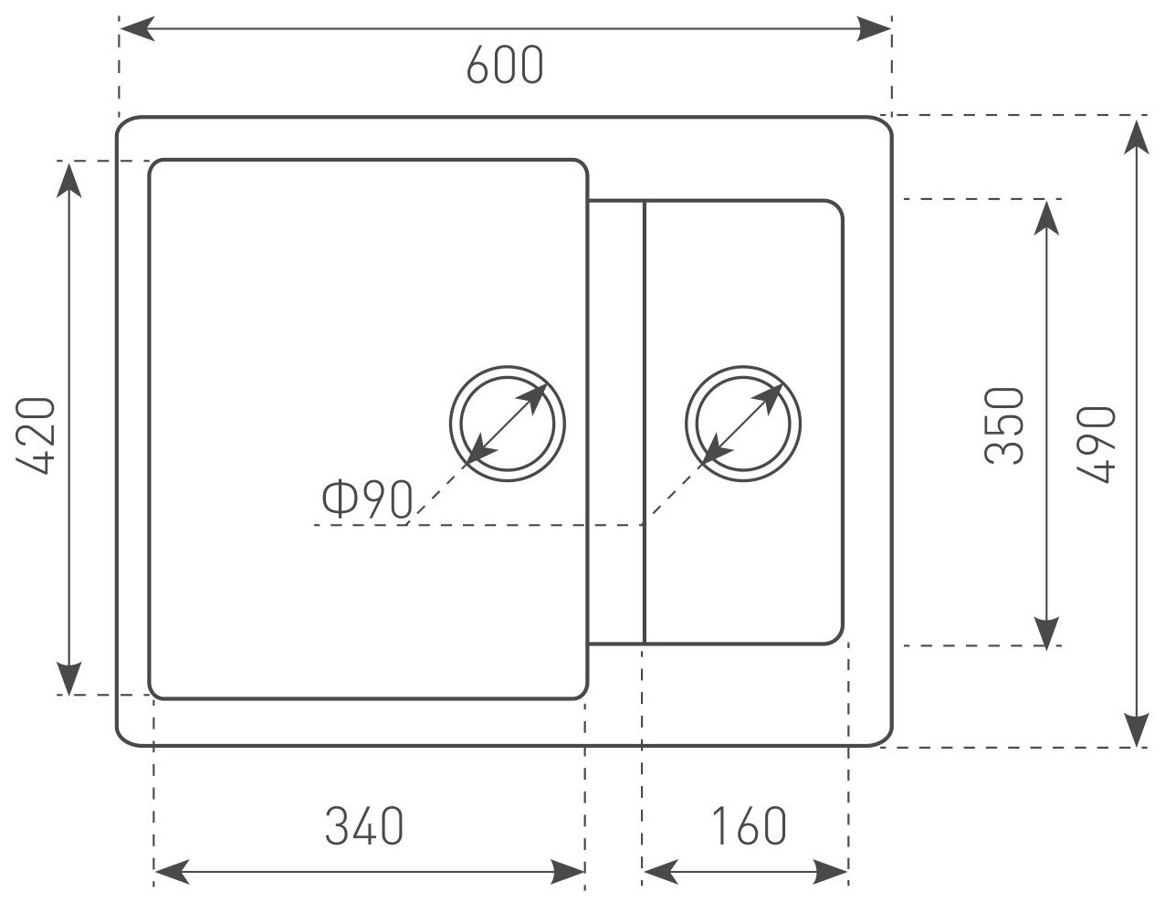 Лучшие цены. Модель RECHTECK 600.2 - эта двухчашевая эргономичная мойка имеет габаритные размеры 600*490 мм. и устанавливается на шкаф 60 см. Параметры большой чаши составляют 340*420 мм, тогда как малой 160*350 мм. Вторая чаша & это своего рода дополнительный рабочий инструмент на кухне. В ней можно мыть отдельно овощи и фрукты, размораживать мясо, складывать чистую посуду или поставить емкость, куда удобно складывать продукты, нарезанные на разделочной доске, которую можно расположить тут же, на крыле мойки. Магазины в вашем городе.