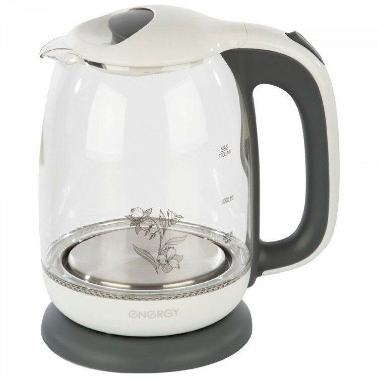Чайник стеклянный 1,7л Energy, арт. E-281, бело-серый, 2200Вт