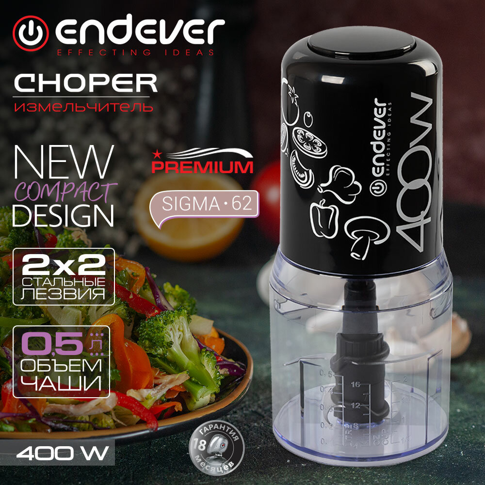Измельчитель кухонный электрический Endever Sigma-62 / чоппер / 400 Вт / пластиковая чаша объемом 0,5 литр / 2 двойных лезвия