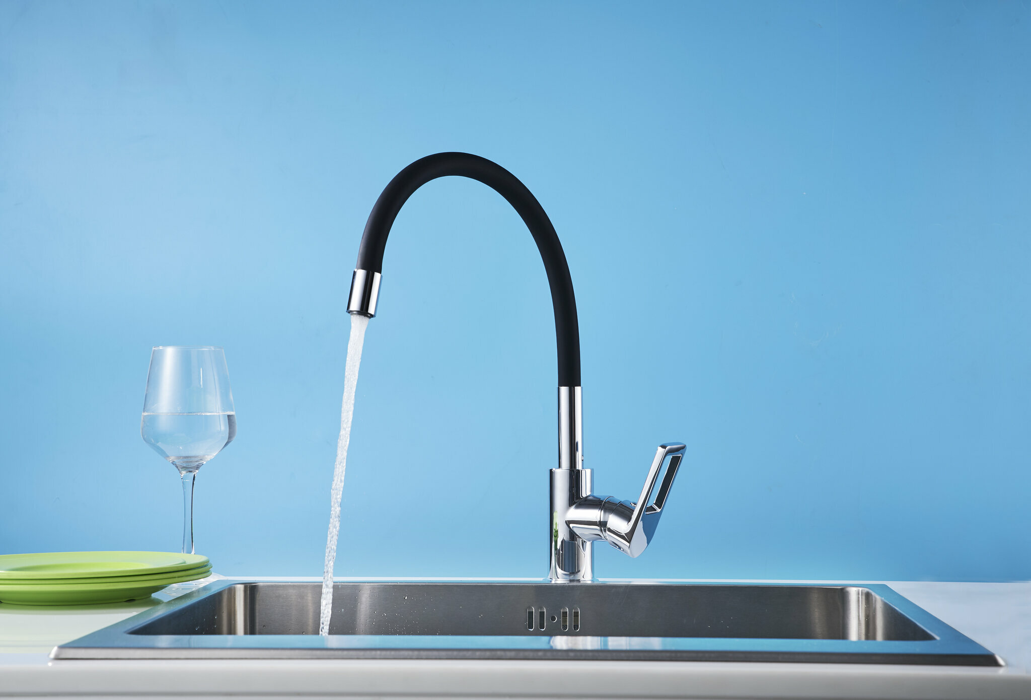 ROSSINKA Z35-35U-Black, Смеситель одноручный (35 мм) для кухни с гибким изливом, латунь, хром/черный