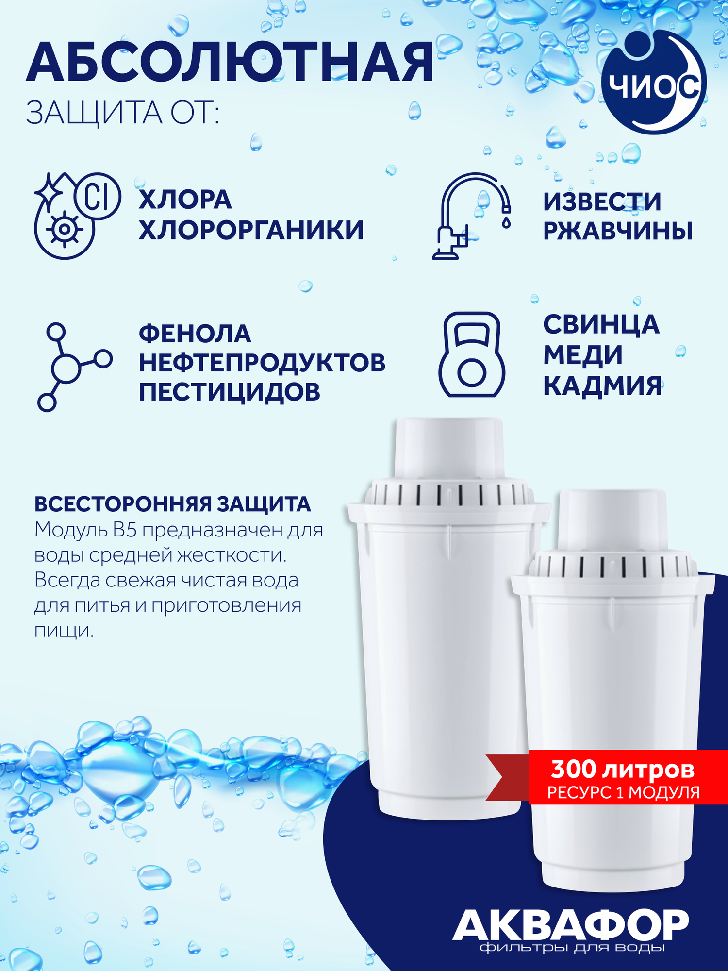 Лучшие цены. Сменный модуль Аквафор "В100-5" предназначен для доочистки водопроводной воды и удаления избыточной жесткости. Модуль удаляет из воды хлор, фенол, тяжелые металлы, железо, пестициды. Благодаря использованию уникальных волокнистых сорбционных материалов марки "Аквален" в комбинации с лучшими марками активированных углей модуль надежно и необратимо задерживает не только органические соединения, железо и тяжелые металлы, но и другие виды вредных примесей, а также умягчает воду и снижает. Магазины в вашем городе.