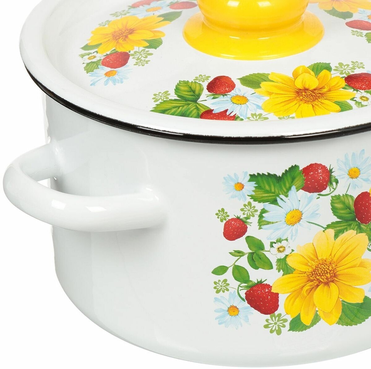 Кастрюля Стальэмаль Набор кастрюль «Земляника», 3 предмета: 1,5 л, 2,9 л, 4,5 л, эмалированные крышки, индукция, цвет белый