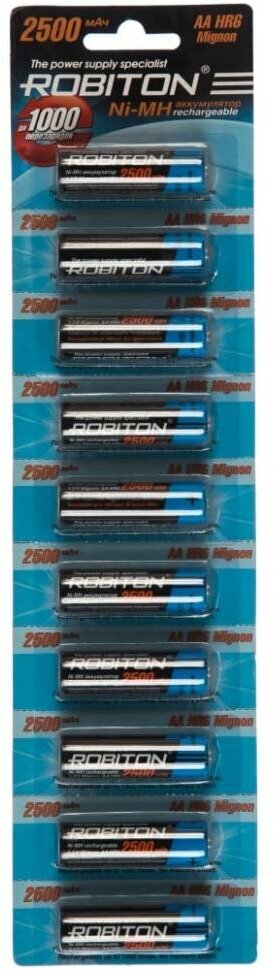 Аккумуляторы и батарейки Ni-Mh аккумуляторы ROBITON 2500MHAA-1 BL-10 8997, 1.2В, 2500мАч, размер АА (HR6), металлогидридные, 10шт в упаковке