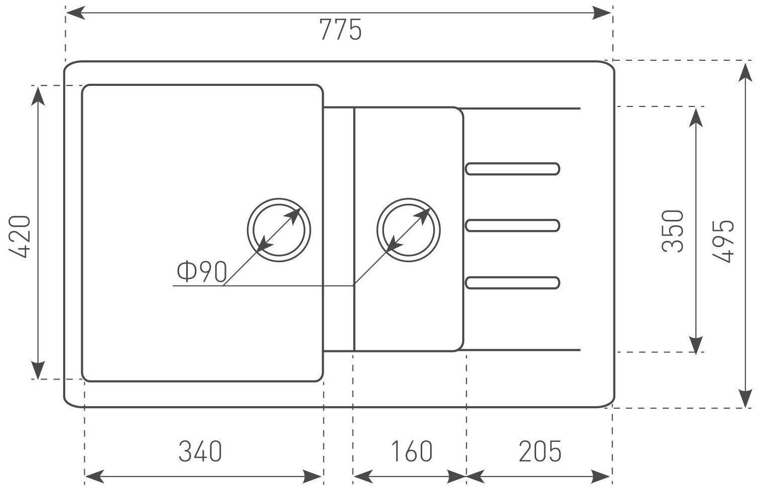 Лучшие цены. Конструкция вместительной гранитной мойки RECHTECK 775.2 обладает всем, что необходимо иметь под рукой в то время, когда хлопочешь на кухне и постоянно пользуешься раковиной. Обширная основная чаша, дополнительная чаша меньших размеров и большое удобное крыло - о таком моечном центре можно только мечтать! В то время как в одной секции замачивается с моющим средством пригоревшая сковорода, в другой свободно моется посуда. Возникла необходимость вымыть продукты? Одна из чаш будет свободна. Магазины в вашем городе.