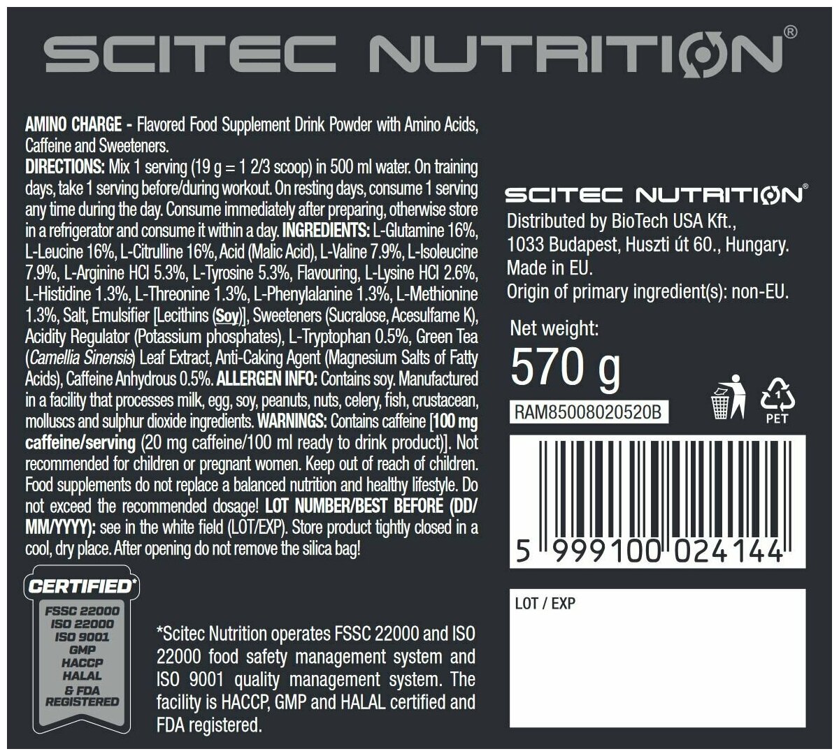 Scitec Nutrition Amino Charge 570 гр