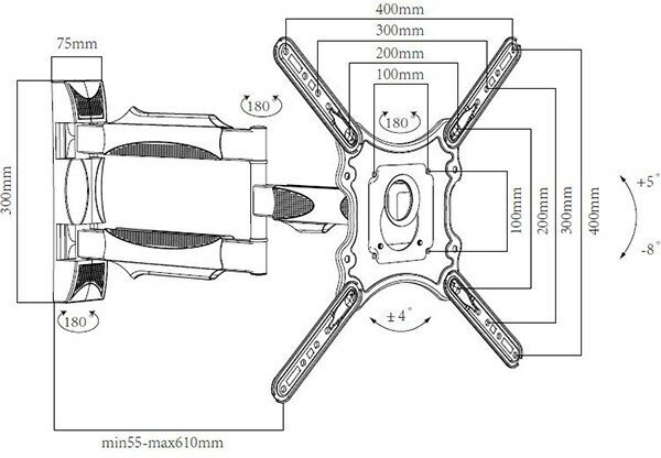 | Крепление VESA | 75x75 мм / 100x100 мм / 200x100 мм / 200x200 мм / 300x300 мм / 400x400 мм |