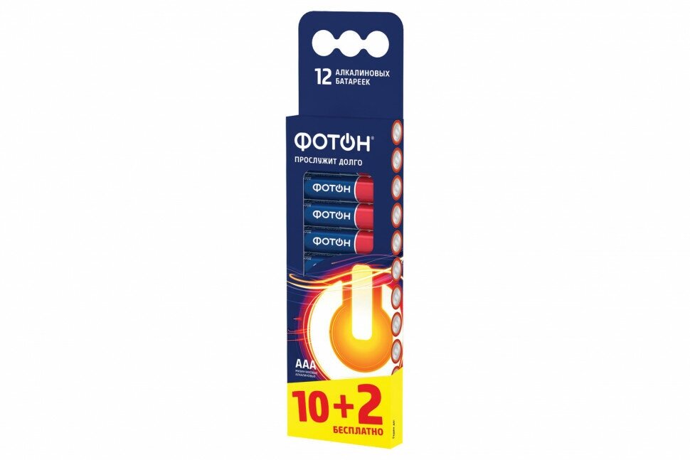 Лучшие цены. Алкалиновые батарейки Фотон в картонной упаковке 12 шт. Щелочные (алкалиновые) батарейки Фотон показывают великолепные результаты работы в различных устройствах и приборах. Они идеально подходят, например, для ручных фонарей, для аудиомагнитол, для mp3-аудиоплееров и диктофонов, для цифровых фотоаппаратов и других портативных и бытовых устройств. Многочисленные тесты и положительные отзывы покупателей говорят о том, что батарейки Фотон по своим характеристикам ни в чём не уступают элементам питания. Магазины в вашем городе.