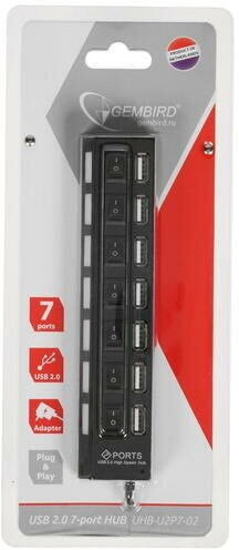 UHB-U2P7-02 Концентратор USB 2.0 Gembird Uhb-u2p7-02, 7 портов, питание, блистер