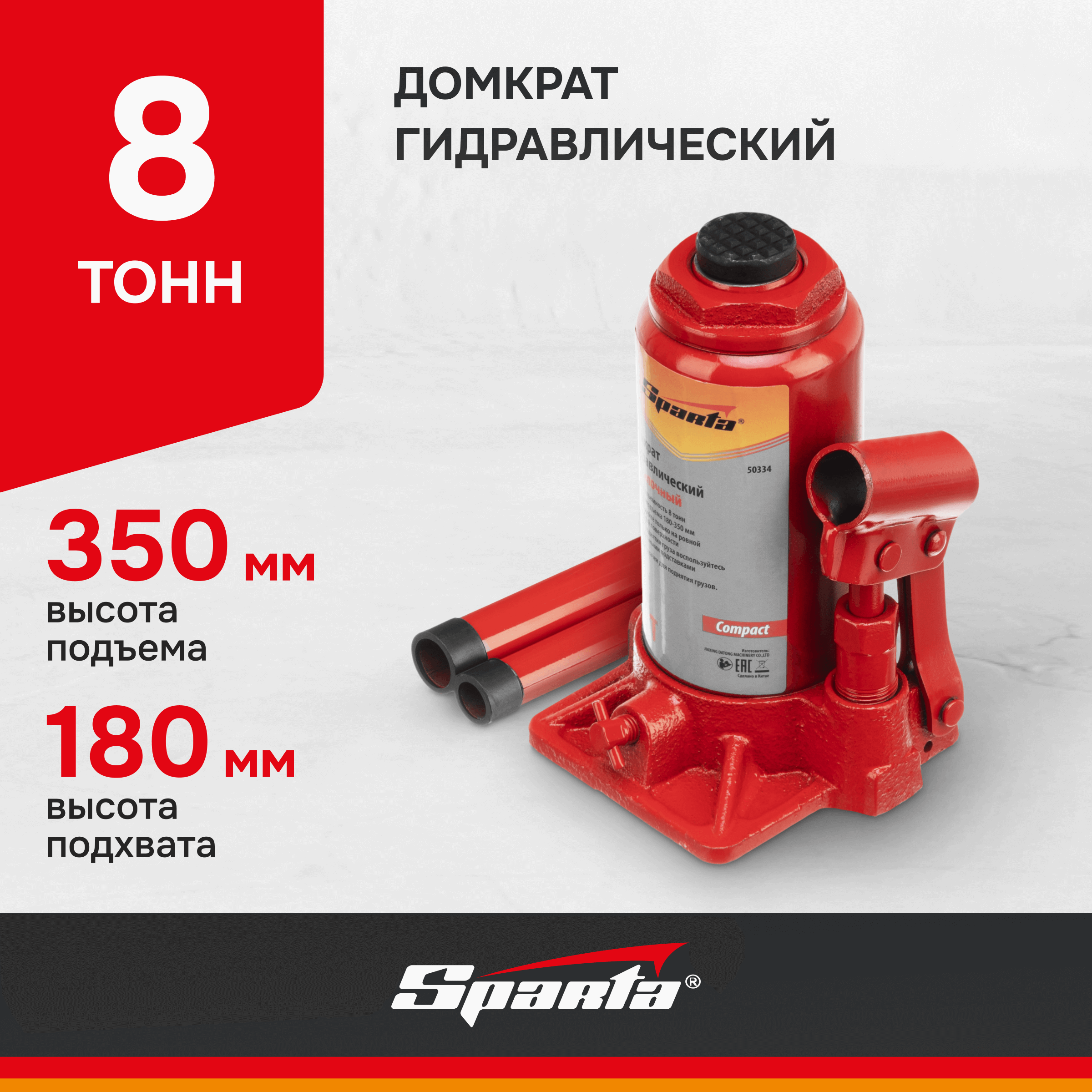 Домкрат SPARTA 50334 Домкрат бутылочный 8 т, высота подхвата 180 мм, высота подъма 350 мм, Compact