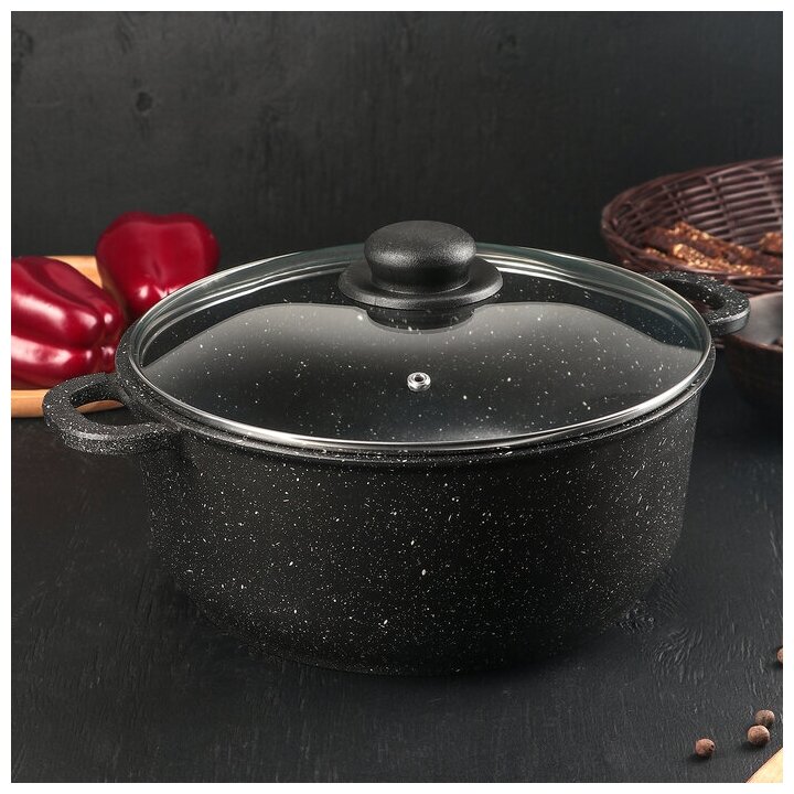 Кастрюля алюминий, антипригарное покрытие, 5 л, с крышкой, крышка стекло, Гардарика, Орион, 1605-04-10