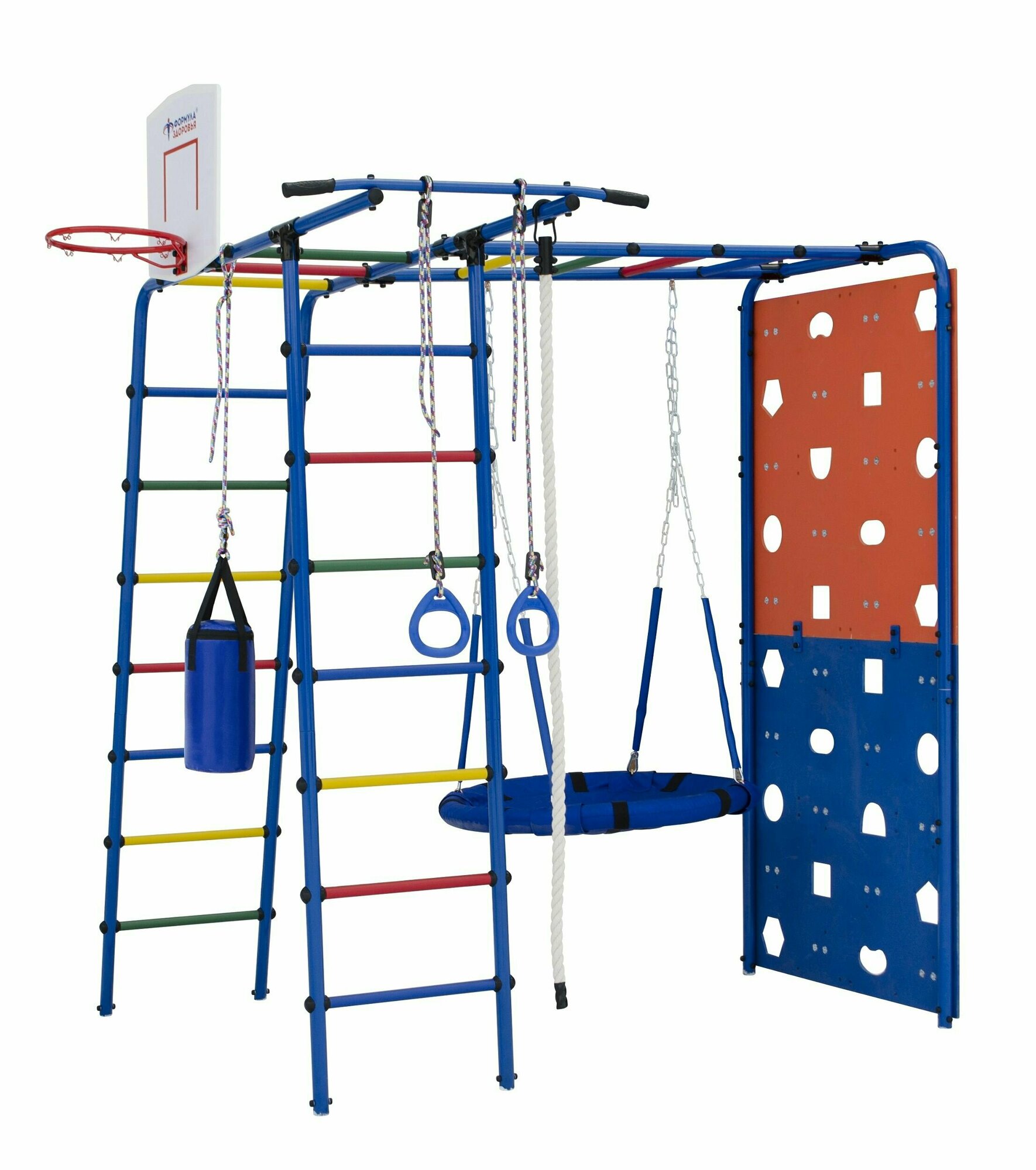 Лучшие цены. Возраст : От 3 лет; Maксимальная нагрузка, кг : 80; Maксимальная нагрузка, кг : 150; Комплектация : Комплекс; Комплектация : Канат; Комплектация : Кольца; Комплектация : Скалодром; Комплектация : Баскетбольное кольцо; Комплектация : Качели; Комплектация : Боксёрский мешок; Комплектация : Нерегулируемый турник; Состав : Металл. Магазины в вашем городе.