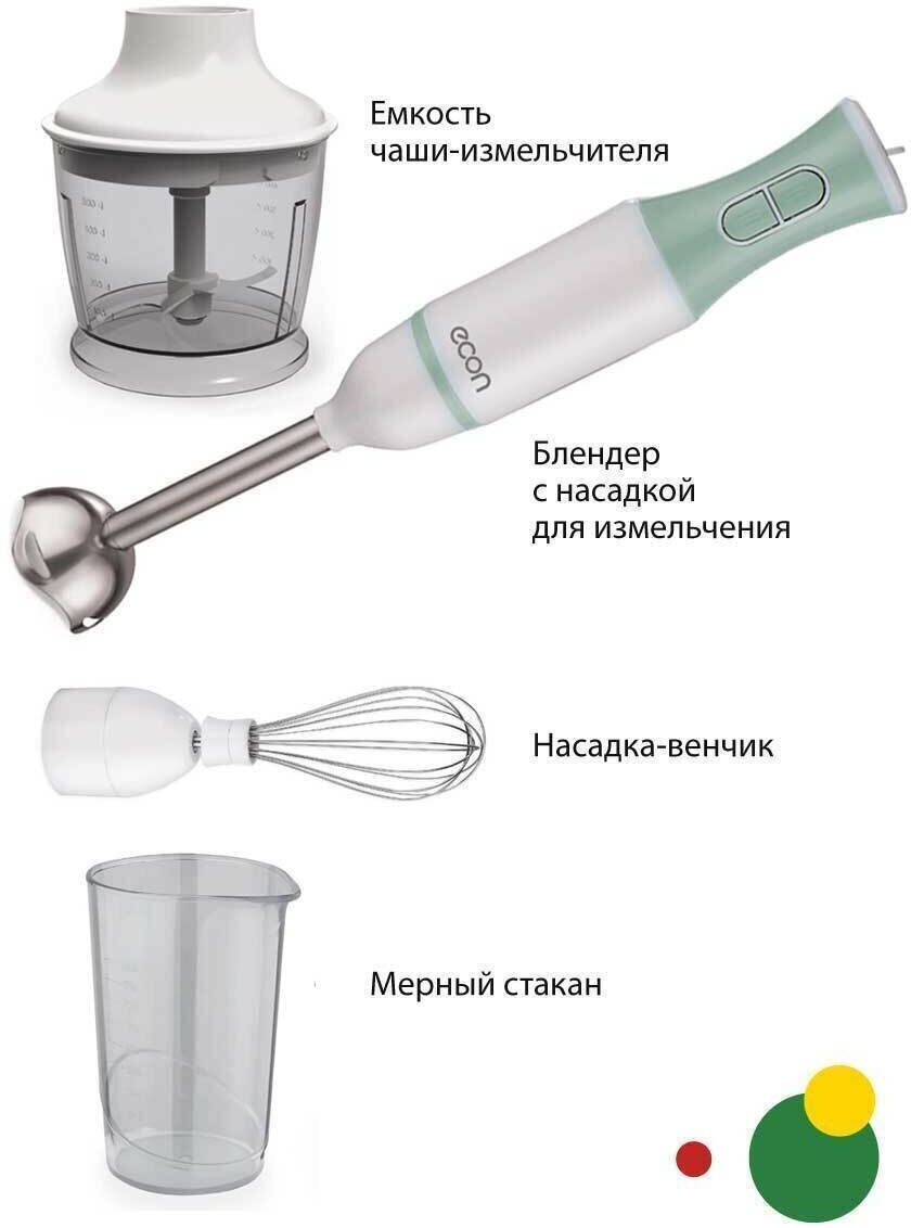 Погружной блендер ECON 700 Вт, с ножом-измельчителем и венчиком