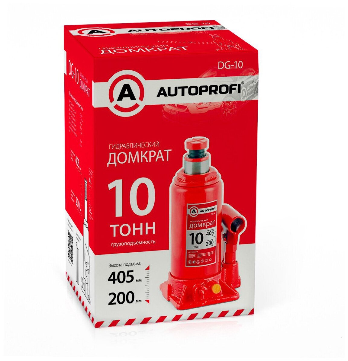 AUTOPROFI DG10 DG-10_домкрат! бутылочный гидравл., 10 тонн, защита от перегруза, высота 200-405мм\