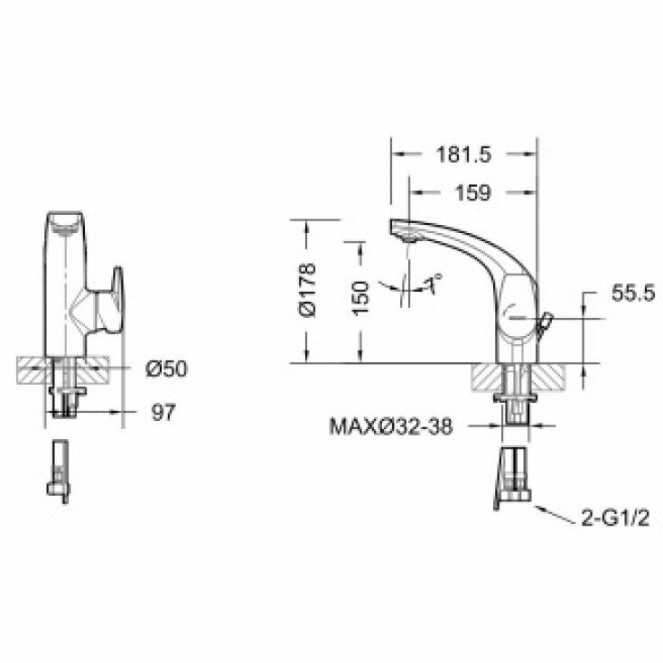 | Диаметр отверстий для установки | 32 мм (32 – 38 мм) |