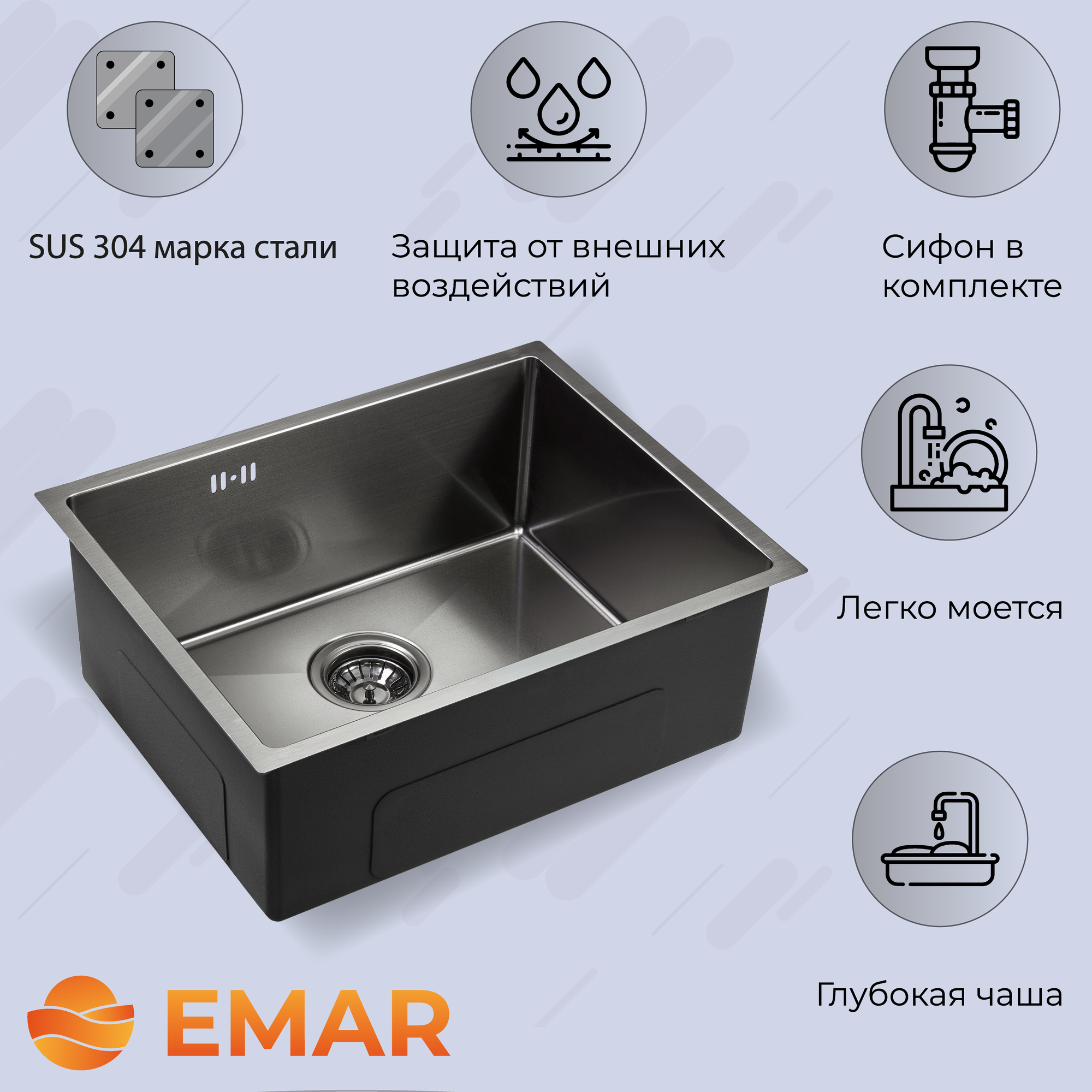 Emar Мойка из нержавеющей стали Emar EMB-123 PVD Nano Dark, мойка, нержавеющая сталь, вороненая сталь