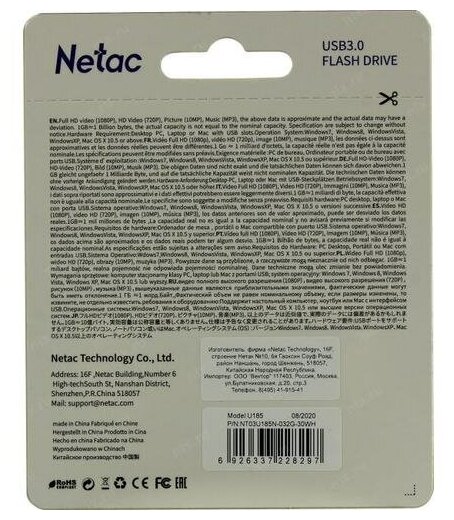 256Gb Netac U185 white USB 3.0 (nt03u185n-256g-30wh) Nt03u185n-256g-30wh