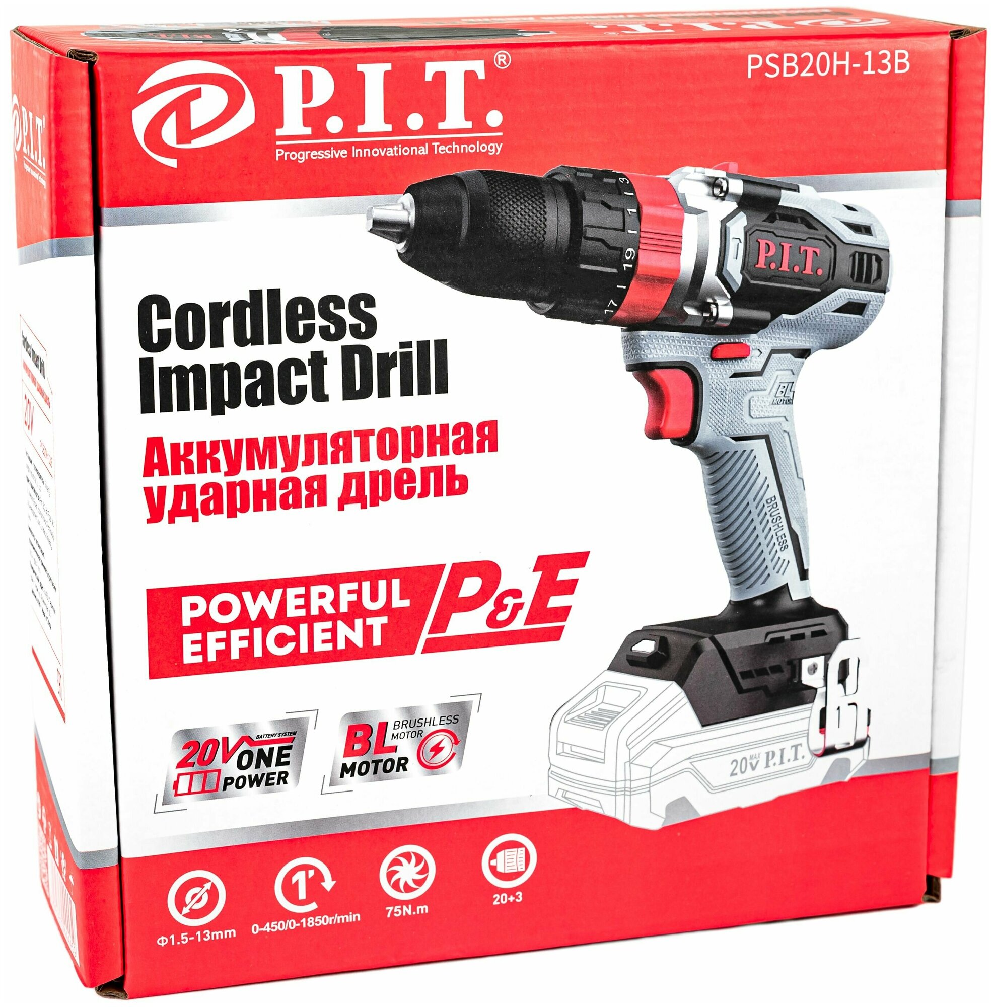Аккумуляторная ударная дрель P.I.T бесщеточная PSB20H-13B SOLO (20В, 75Нм, метал патр13мм, 2ск, коробка)