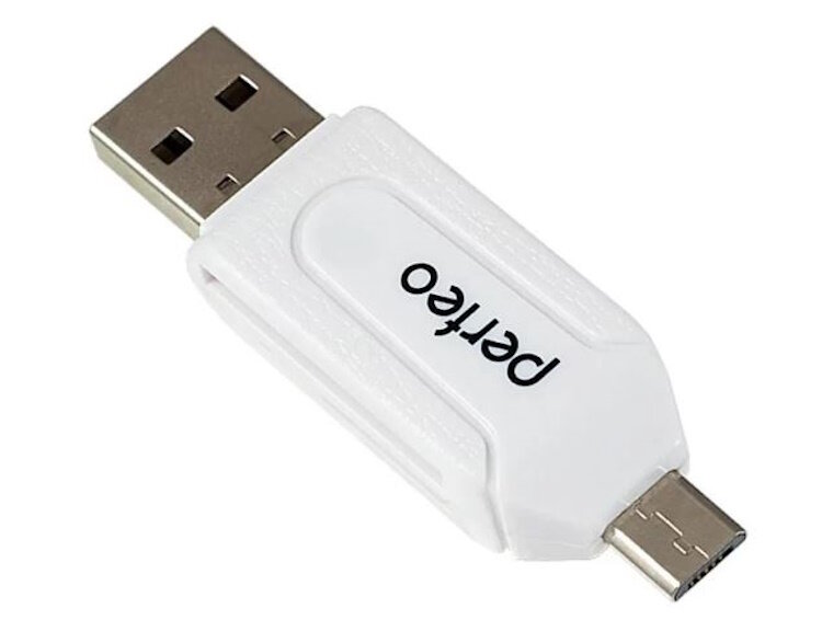 Картридер Perfeo OTG Сard Reader 2.0 White (mSD,mSDHC,SD,SDHC) PF-VI-O004, 1шт.