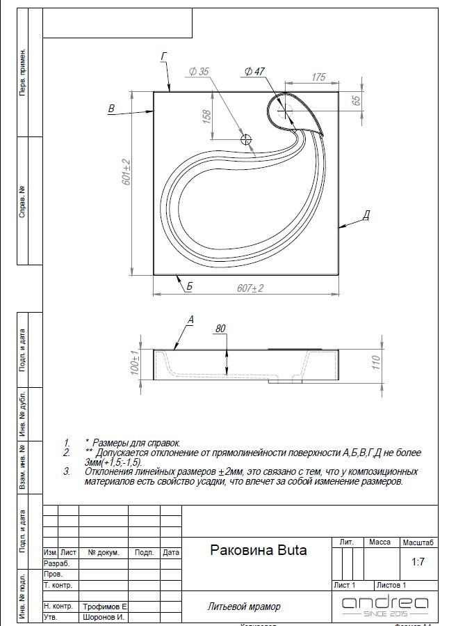 Раковина 60.7 см Andrea Buta 600