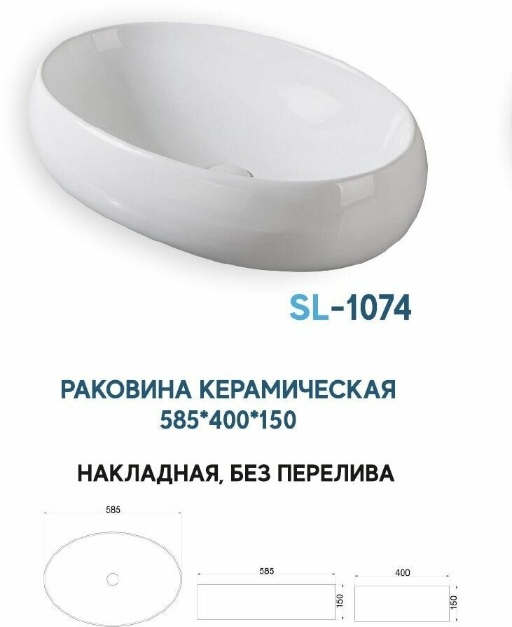 Раковина накладная SantiLine SL-1074 58,5х40 см, белый 5 272 ₽ Подробнее