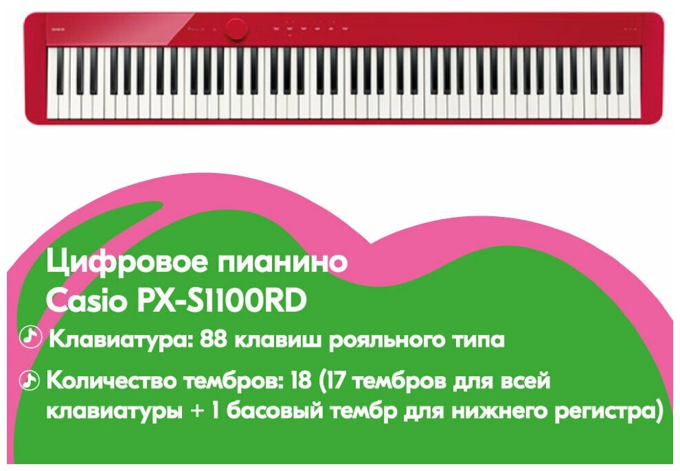 Casio Privia PX-S1100RD Цифровое пианино 79 900 ₽ Подробнее