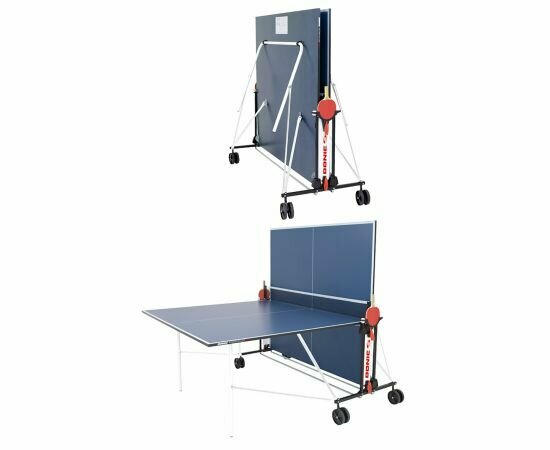Лучшие цены. Теннисный стол для помещений DONIC INDOOR ROLLER FUN -высококачественный немецкий теннисный стол доступный по цене, предназначен для использования в помещении. Удобная компактная система сложения, легко складывается - и раскладывается, оборудован надежной системой блокировки столешниц. Рама изготовлена из стальных труб диаметром 25мм, покрытых порошковым покрытием. Стол имеет 4 колеса диаметр 125 мм, - одна сторона маневровая. Так же стол оборудован встроенной сеткой, не требующей демонтажа при складывании. Магазины в вашем городе.