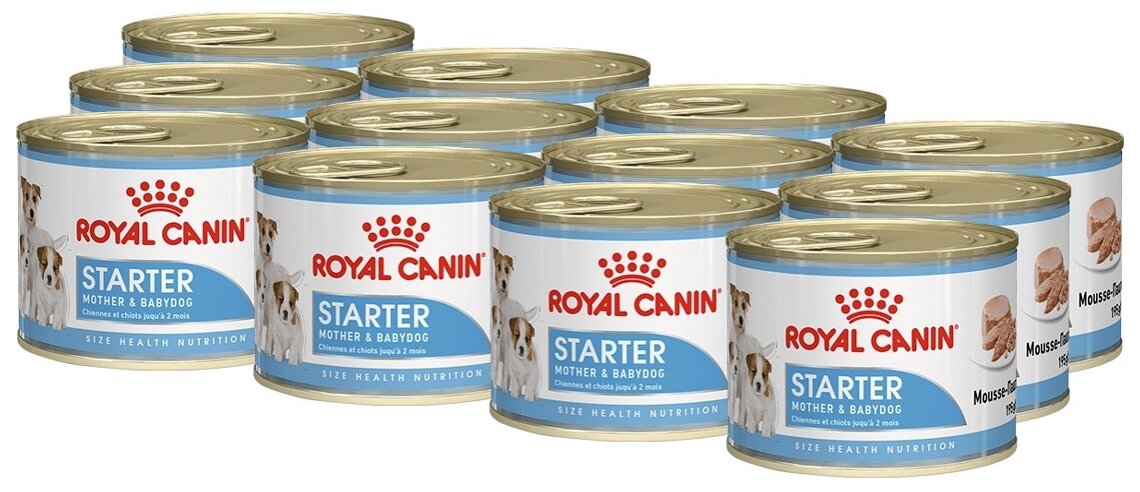 Влажный корм для кормящих собак и щенков Royal Canin Starter Mousse 1 уп. х 12 шт. х 195 г