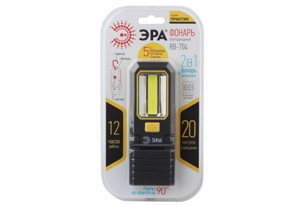 Фонарь ЭРА 5Вт COB+3xLED, поворотный 90, крючок, магниты, питание 3xAAA (не в комплекте), RB-704, Б0029179 1 шт .
