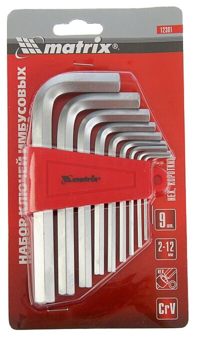 Набор инструментов Набор ключей шестигранных 2-12 мм 9 шт короткие Matrix