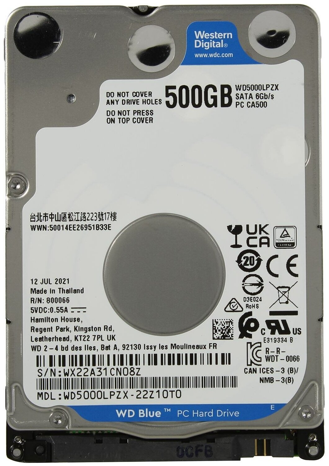 Жесткий диск WD Blue Wd5000lpzx 500ГБ 2,5" 5400RPM 128MB (sata Iii) Mobile Wd5000lpzx .