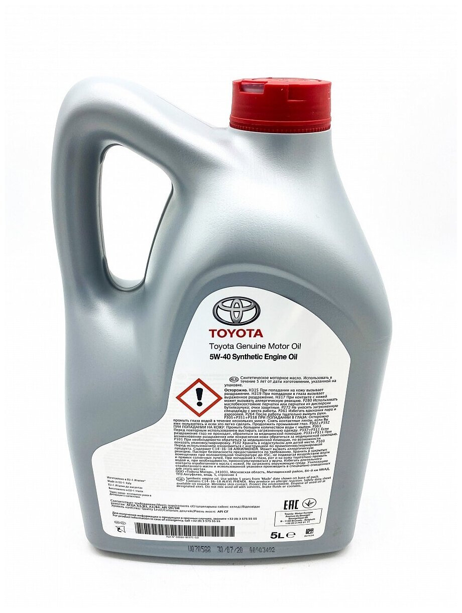 Моторные масла Моторное масло синтетическое ENGINE OIL SL 5W-40, 5 л TOYOTA/LEXUS 0888080375GO 1436787625 ZHBNH 5H
