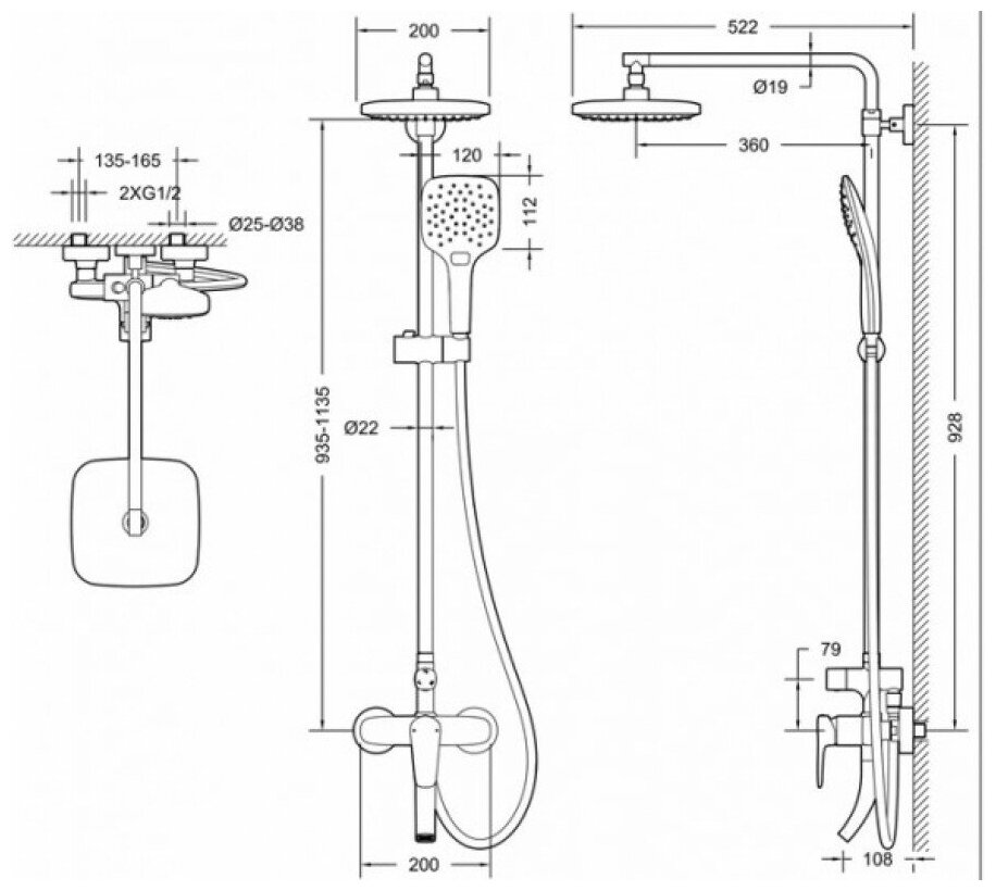 | Комплектация | ручной душ (душевая лейка) / верхний душ (тропический) / смеситель / стойка / штанга / душевой шланг / крепление ручного душа |