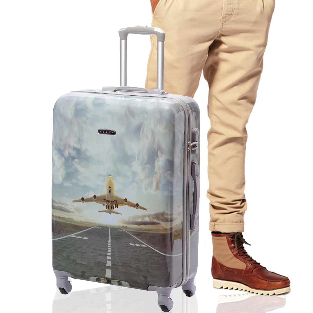 Чемодан на колесах дорожный средний багаж для путешествий s+ TEVIN размер С+ 60 см 52 л небольшой и легкий 2.6 кг прочный поликарбонат с изображением