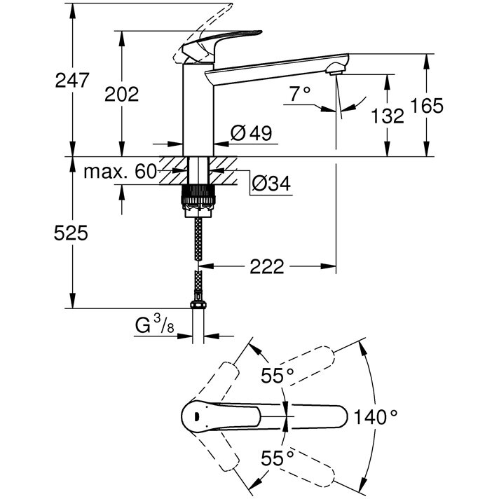 | Макс. толщина столешницы | 60 мм |